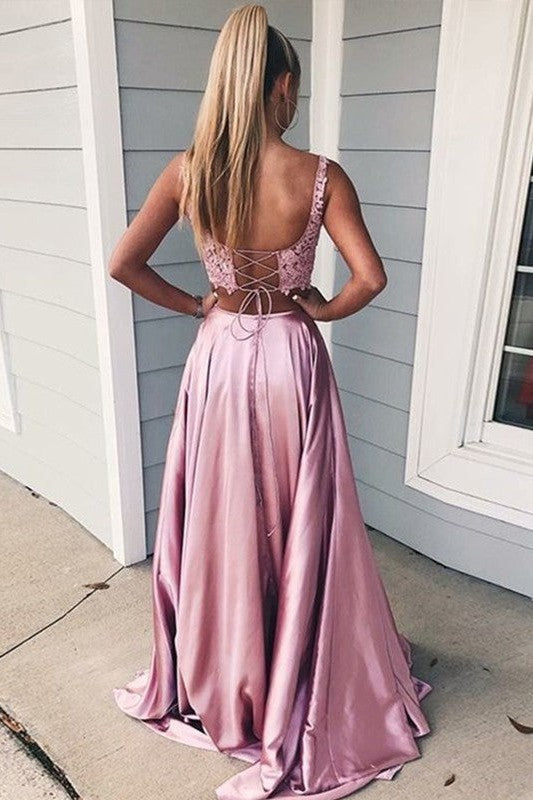 Sleeveless Amazing Square With Appliques Two Piece Prom Dress On Sale