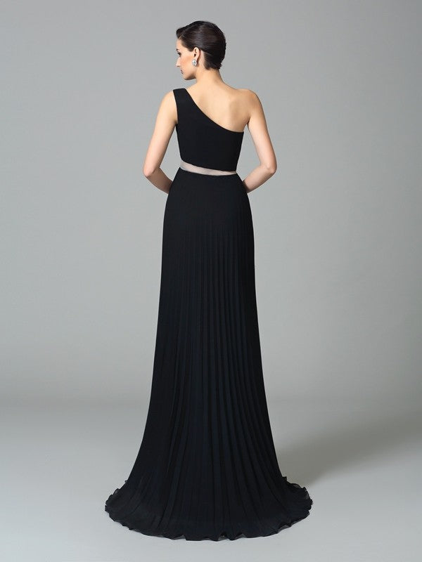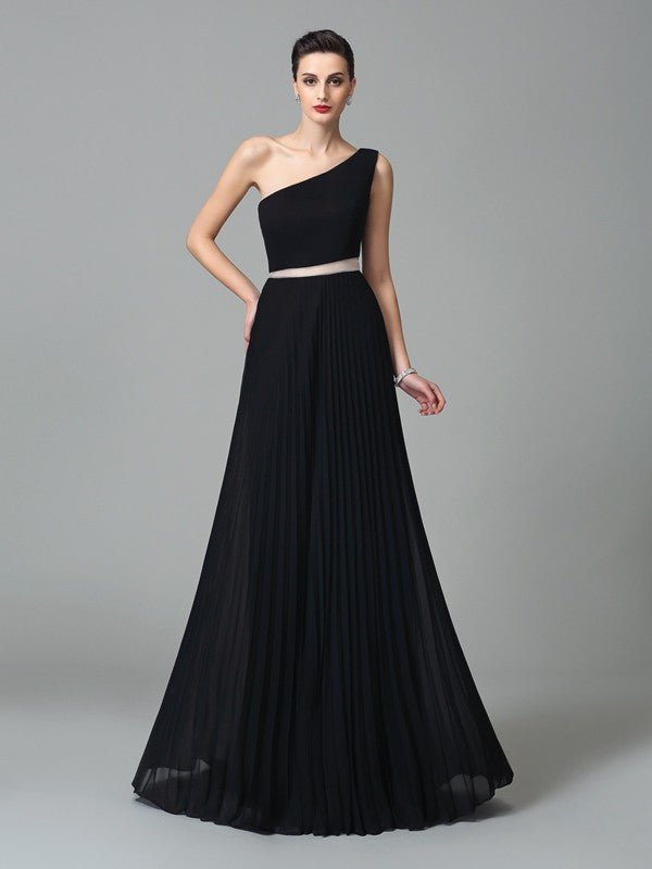 Gorgeous One-Shoulder Pleats Sleeveless Long Evening Dress Chiffon