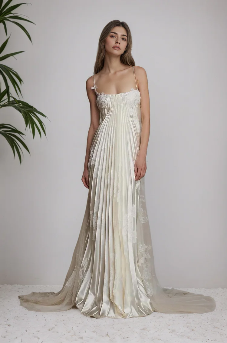 Embrace effortless elegance with this floor-length bridesmaid dress, designed for warm-weather celebrations. Delicate pleating creates graceful movement through the bodice, while adjustable straps offer customize support and a refined silhouette. The sleeveless cut showcases the shoulders with understated sophistication, perfect for summer ceremonies and evening events. Crafted with a boho-inspired aesthetic, this gown balances romantic draping with modern simplicity, making it an ideal choice for bridesmaids seeking timeless style and comfort.
