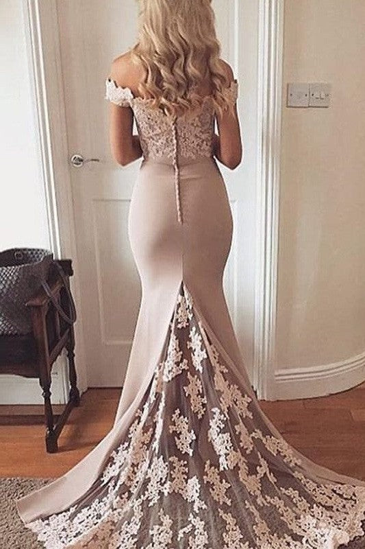 Beautiful Sleeveless Mermaid Off-the-Shoulder Elastic Woven Satin With Appliques Prom Dress