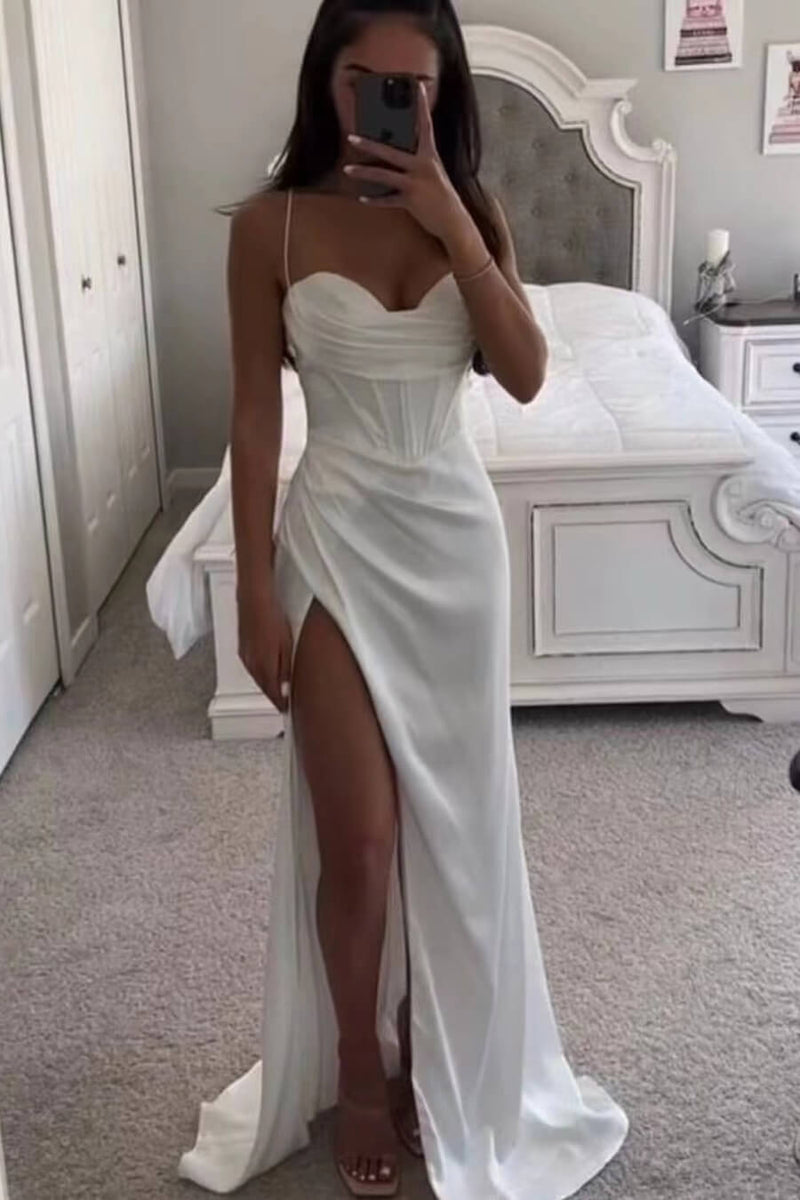 Long Slit Mermaid Sweetheart Prom Dress UK with Spaghetti-Straps