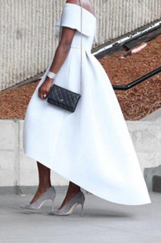 Glamorous Party Dress Ruffles Off-the-Shoulder Sleeveless Asymmetrical Prom Dress