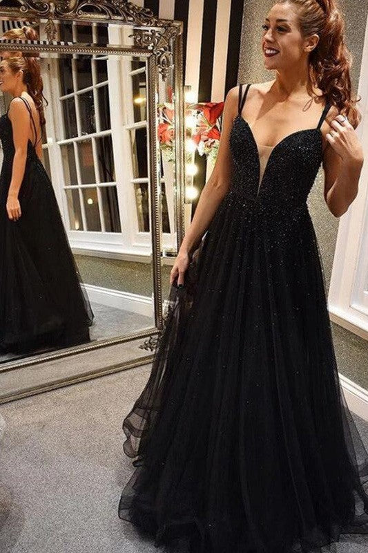 Gorgeous Tulle Beading Long Sleeveless Prom Dress