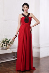 Elegant V-Neck Beading Sleeveless Long Evening Dress Chiffon